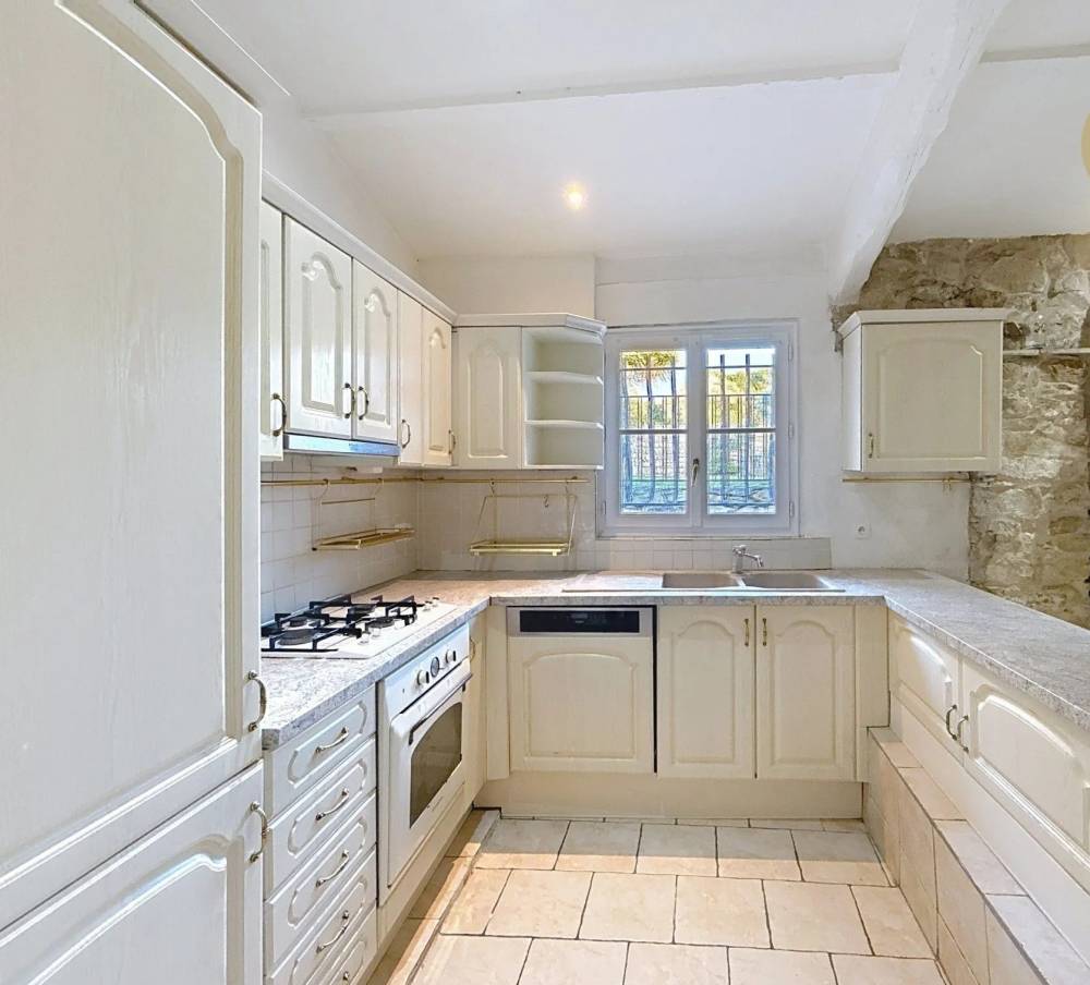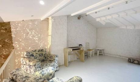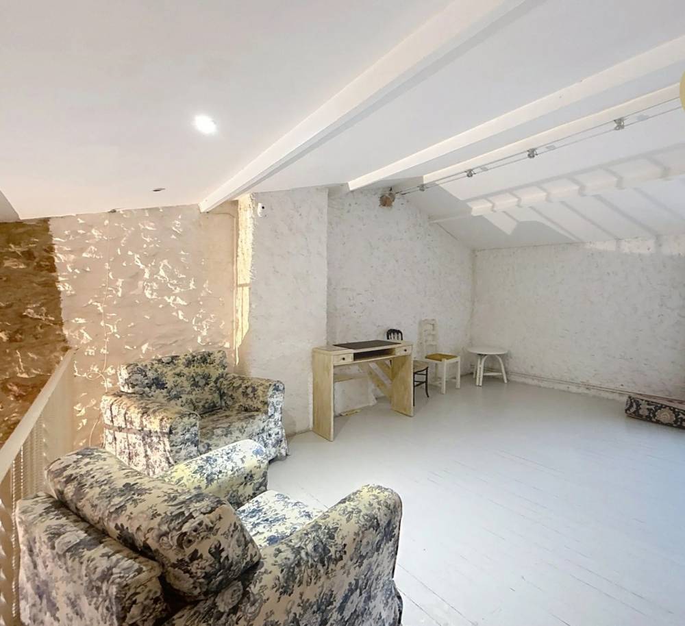 The old house consists of a living room, an enclosed kitchen, two bathrooms, 2 bedrooms + a mezzanine.