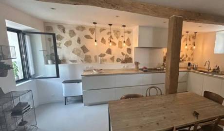 In the heart of Villeneuve-Loubet, a stunning 5-piece house awaits, boasting a total living area of 152 square meters. This beautifully refurbished property features an elegant entrance, a spacious living room of 19 square meters, and a sleek kitchen of 21 square meters. The house also includes three comfortable bedrooms, each offering ample space for relaxation. Additional features include a practical laundry room, a cellar, and multiple bathrooms, ensuring convenience and comfort for all occupants. With its sleek, modern design and ample natural light, this house is the epitome of stylish living.