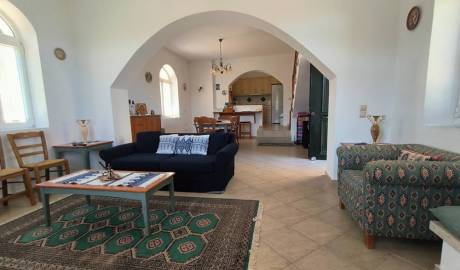 Outside, the property boasts a landscaped garden with grass, stone walls and a small covered storage space with a sink. The property used to be a traditional Cretan house but it was recently restored to today’s standards of living while maintaining the traditional character and decor.