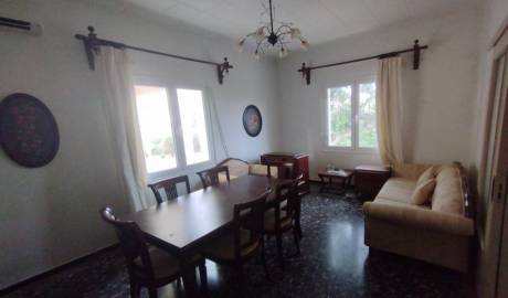This property for sale is located in Vamvakopoulo, Chania, Crete. It’s a classic detached home set within its own fenced plot, connecting easily to a quiet road with plenty of parking. Its gentle elevation and surrounding trees provide a comfortable sense of privacy, while the perimeter yard that wraps around the home adds charm with flowers and mature trees in a calm, welcoming neighborhood. The plot also offers the potential to build an additional 53 sqm, allowing for future expansion. The main house is 79 m², complemented by an independent auxiliary building of 18 m² at the back, currently configured for use as a guesthouse.