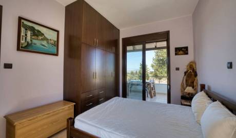 Upstairs, the master bedroom enjoys its own private balcony with sea views, while the two additional bedrooms are bright and airy, perfect for family or guests. A large front veranda offers panoramic views of the surrounding hills and village, while a second veranda at the back opens to views of the lush countryside. These multiple outdoor spaces allow you to experience the natural beauty of the area from different angles throughout the day.