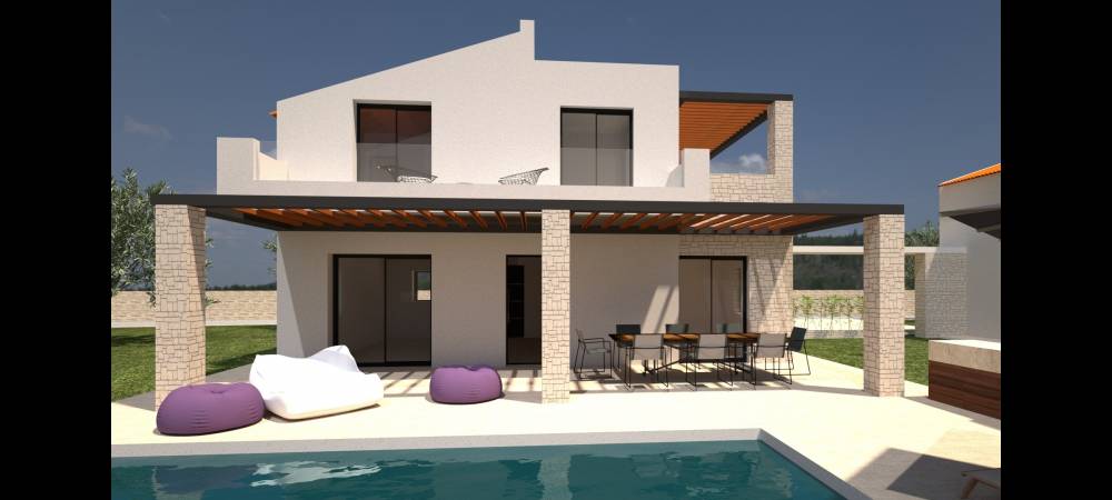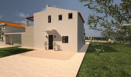 This off-plan villa for sale is located in Maleme, Platanias, Chania. Nestled in a quiet olive grove, it is one of three villas in a small complex, occupying a side position, and offers 84 sqm of comfortable living space on a private 700 sqm plot.