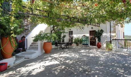 This charming stone house for sale in Topolia, Chania, Crete is a beautifully renovated property that blends rustic character with modern comfort. Nestled on a private road, this peaceful home offers a tranquil retreat, yet it is located in a touristic village. The picturesque courtyard, shaded by lush vines, features a lovely dining area, perfect for enjoying meals while taking in the breathtaking views of the Topolia Gorge stretching all the way to the sea and the Bay of Kissamos.