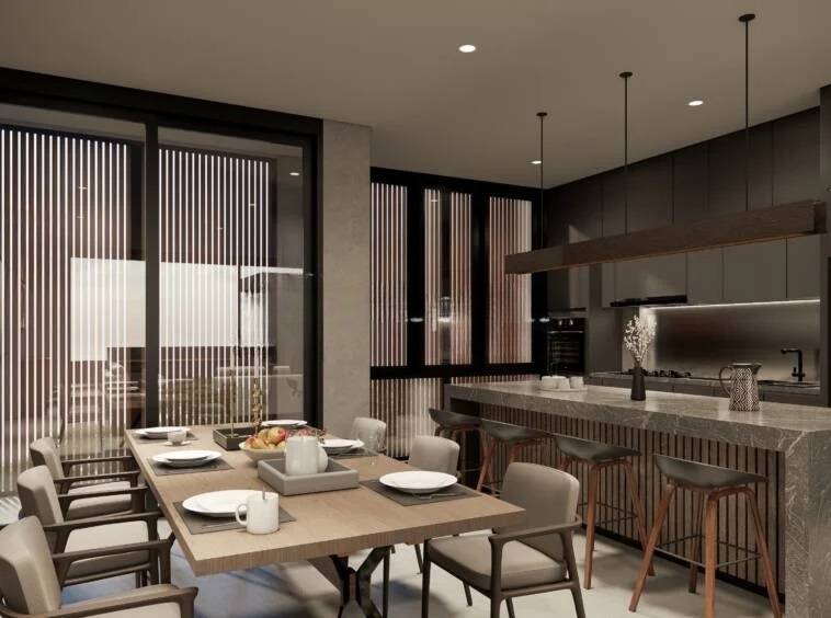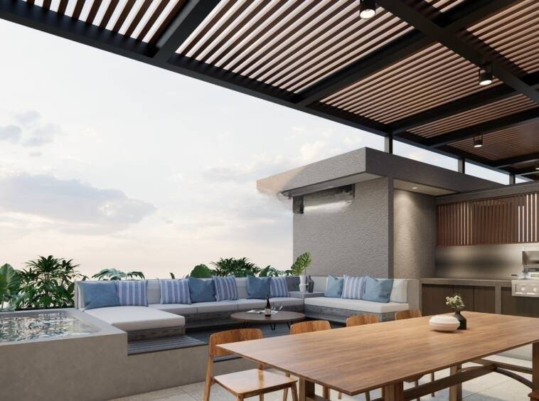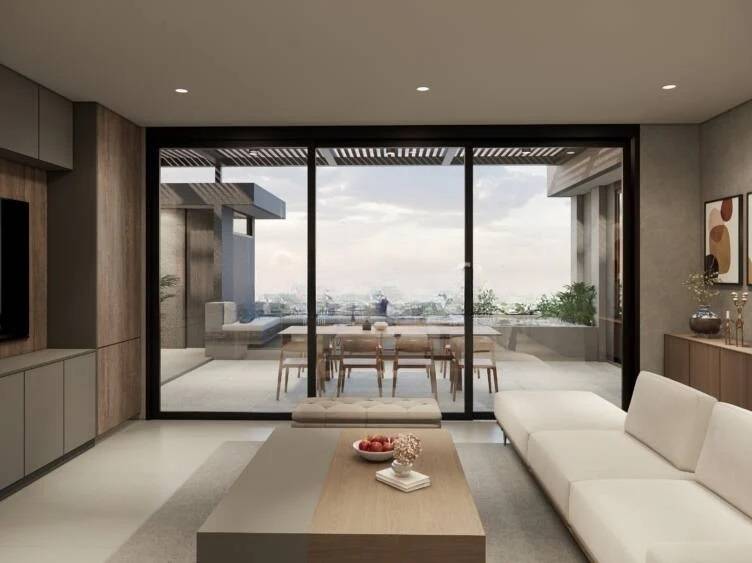 Mit einer beeindruckenden Fläche von 246 Quadratmetern wurde dieses Penthouse sorgfältig entworfen, um den ultimativen modernen Luxus und Komfort zu bieten. Die Fertigstellung ist für das Jahr 2026 geplant. Mit dieser außerplanmäßigen Immobilie profitieren Sie von den neuesten architektonischen Entwürfen und Bautechniken. Das Penthouse verfügt über einen geschlossenen Wohnbereich, der eine perfekte Mischung aus Innen- und Außenbereich bietet, ideal um Gäste zu empfangen oder ruhige Familienmomente zu genießen. Treten Sie ein und Sie werden von einem geräumigen und elegant eingerichteten Wohnbereich begrüßt, der Raffinesse und Stil ausstrahlt. Jedes Detail der Inneneinrichtung wurde sorgfältig durchdacht, von den hochwertigen Möbeln bis hin zur geschmackvollen Dekoration, die ein Ambiente von unaufdringlichem Luxus schafft. Das Penthouse verfügt über zwei großzügige Schlafzimmer, von denen jedes als privates Refugium mit reichlich Schrankraum und ruhiger Aussicht konzipiert ist. Die beiden Bäder sind ebenso beeindruckend, mit modernen Armaturen und Oberflächen, die ein Spa-ähnliches Erlebnis bieten.