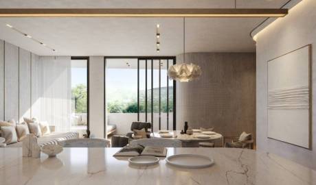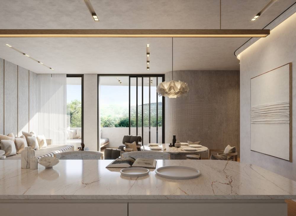 Moderne, raffinierte Oberflächen und stilvolle Möbel prägen das Innere der Wohnung und bieten eine nahtlose Mischung aus Innen- und Außenleben. Genießen Sie das tropische Ambiente und die frische Brise in diesem tadellos gestalteten Raum. Das Schlafzimmer ist eine Oase der Ruhe, mit Plüschbettwäsche und ruhiger Beleuchtung, die für erholsame Nächte und einen erfrischenden Morgen mit Panoramablick auf Balis Grün sorgt. Eingebettet in der begehrten Pecatu Gegend, ist die Wohnung nur einen Steinwurf von unberührten Stränden, Gourmet-Restaurants und einem lebhaften Nachtleben entfernt und bietet eine Mischung aus Abenteuer und Entspannung.