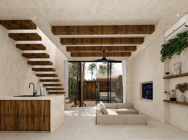 Im Herzen von Balis atemberaubendem Bingin-Gebiet gelegen, bietet diese exquisite 1-Schlafzimmer-Villa eine unvergleichliche Investitionsmöglichkeit für alle, die ein Stück vom Paradies suchen. Mit ihrem geräumigen Wohnbereich und den großen Fenstern lässt diese Villa viel natürliches Licht herein und schafft ein warmes und einladendes Ambiente. Das geschmackvoll eingerichtete Wohnzimmer mit seinen bequemen Sofas und Sesseln trägt zur gemütlichen Atmosphäre bei und macht es zu einem idealen Ort der Entspannung.