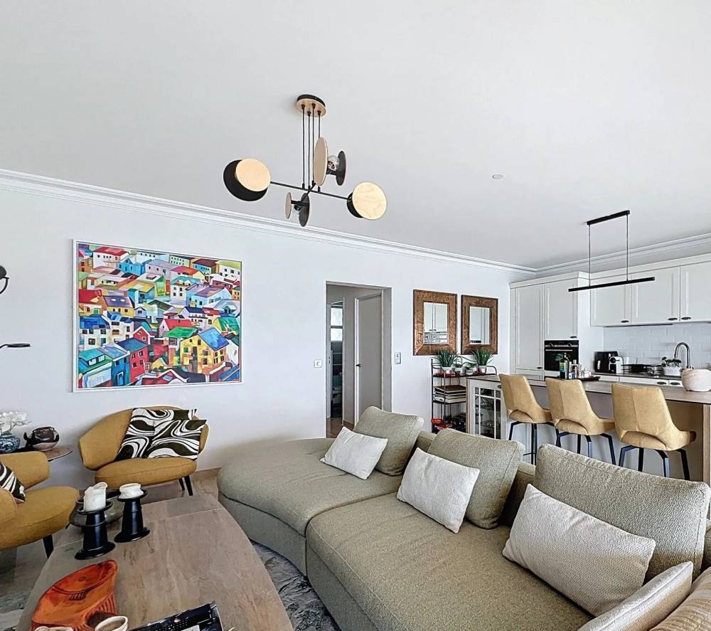 Das geräumige und helle Wohnzimmer öffnet sich direkt auf die Terrasse, ideal, um die Aussicht und die Meeresbrise zu genießen.