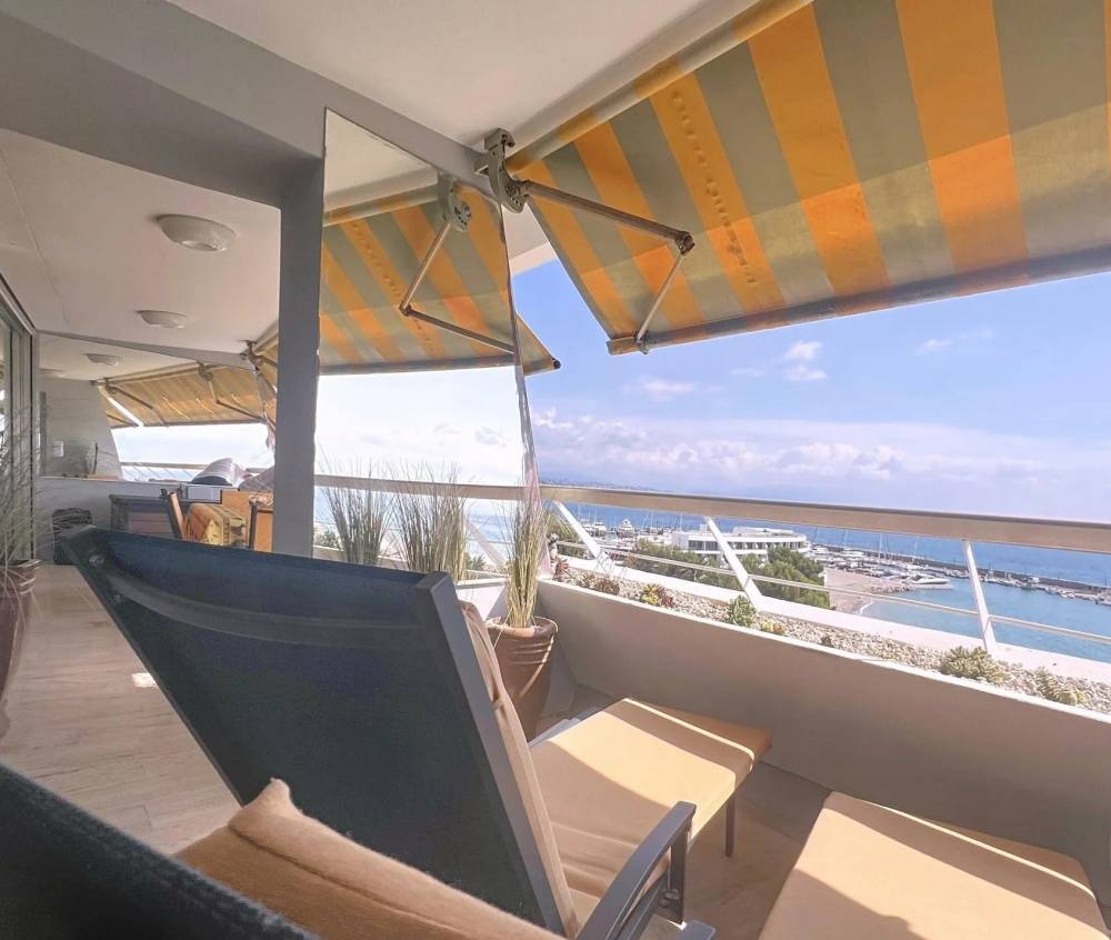 Diese 92 m2 große Wohnung befindet sich in der prestigeträchtigen Marina Baie des Anges und bietet einen atemberaubenden 180-Grad-Blick auf das Mittelmeer. Sie werden den Eindruck haben, auf dem Wasser zu laufen, da die Nähe zum Meer großartig ist.