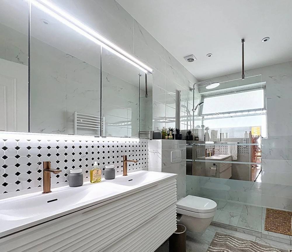 Die Wohnung besteht aus einem Doppelwohnzimmer mit ausgestatteter Küche, die auf eine Terrasse von 20 m2 führt, drei Schlafzimmern, darunter ein Hauptschlafzimmer und zwei Badezimmern mit WC.