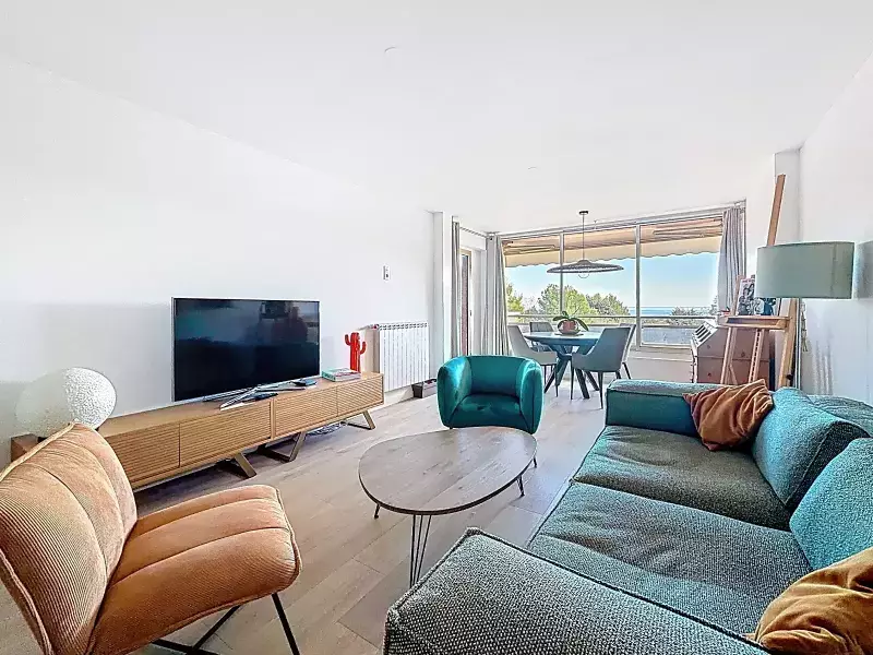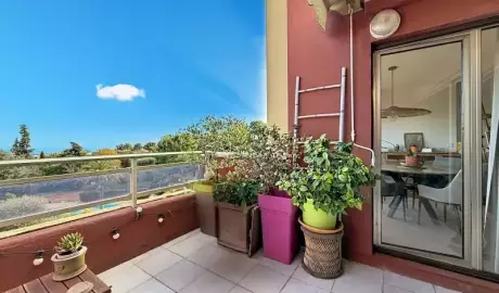 Luxusvilla zum Verkauf an der französischen Riviera in der Stadt Villeneuve-Loubet in der Nähe von Nizza. Zwei-Zimmer-Wohnung mit einer Fläche von 81 m2. Oberste Etage - Meerblick