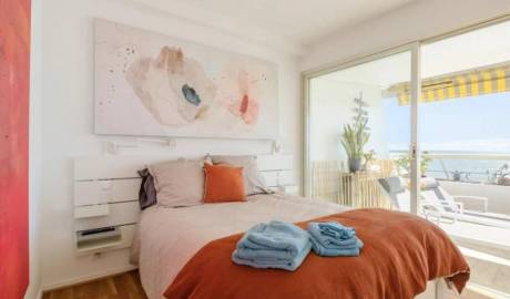 Das moderne Interieur umfasst eine ausgestattete Küche, die sich zu einem hellen Wohnzimmer öffnet, ideal für die Unterhaltung Ihrer Lieben. Zwei geräumige Schlafzimmer, eines davon mit Meerblick, die Ihrem Alltag einen Hauch von Gelassenheit verleihen. Ein großer begehbarer Kleiderschrank ergänzt diesen eleganten Wohnraum.