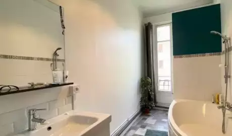 Die Wohnung wurde komplett mit hochwertigen Materialien renoviert, darunter doppelt verglaste Fenster für maximale Schalldämmung, neue elektrische Leitungen und moderne Sanitäranlagen. Die Inneneinrichtung ist in hellen und warmen Farben gehalten, um eine gemütliche Atmosphäre zu schaffen.